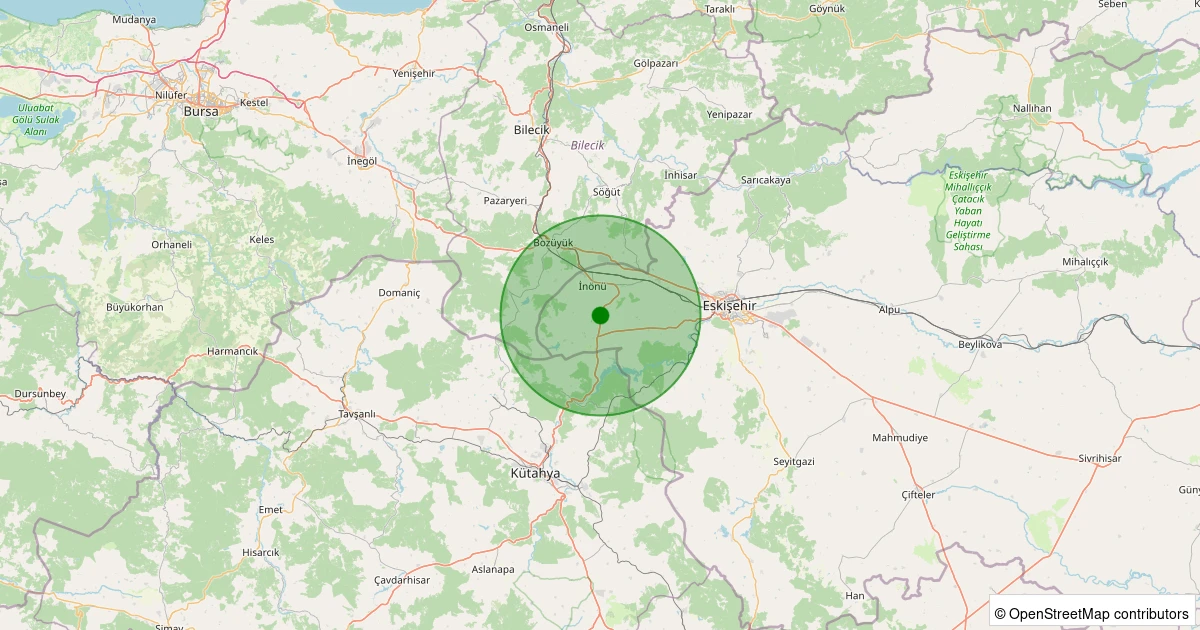 Son 7 gün içinde İnönü - Tutluca noktasından 100 km yarıçap içerisinde meydana gelen diğer depremler: