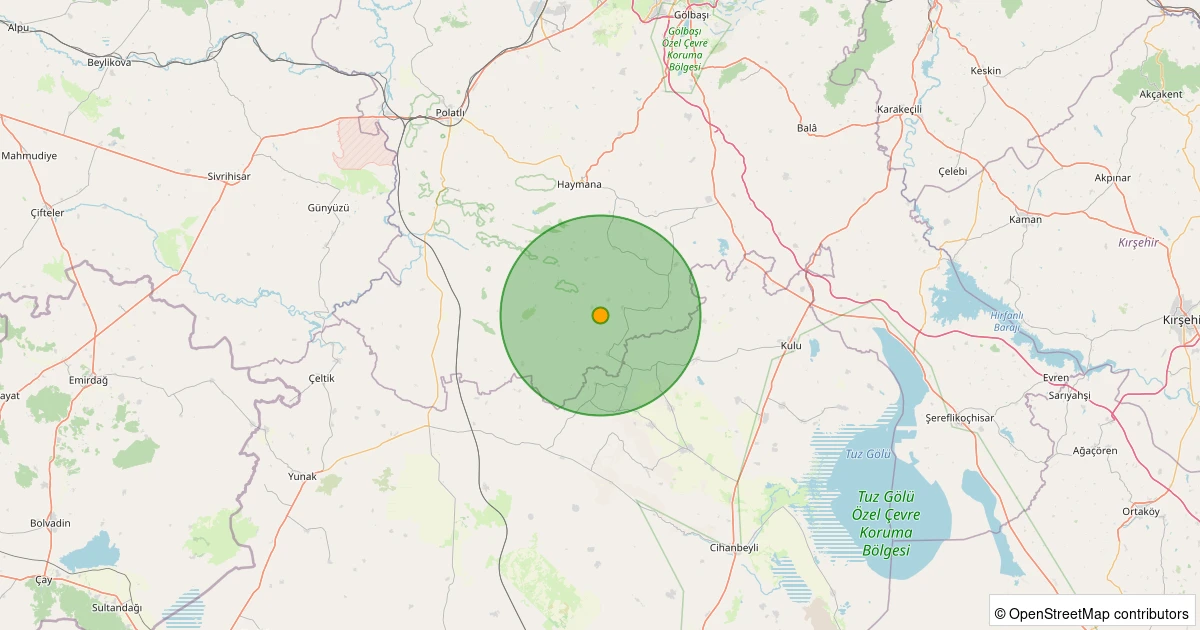 Son bir hafta içerisinde Ankara şehri Haymana noktasından 100 km yarıçap içerisinde toplamda 16 deprem kaydedilmiştir. Bu depremlerden en büyüğü 2.1 büyüklüğünde ve en sığ odaklısı 0.00 kilometre derinlikte gerçekleşmiştir.