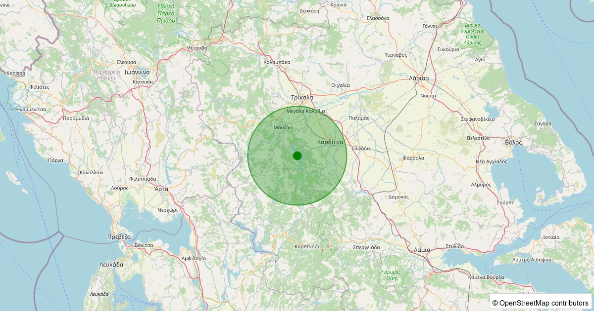Son bir hafta içerisinde Karditsa, Thessalia (Yunanistan) noktasından 100 km yarıçap içerisinde toplamda 1 deprem kaydedilmiştir. Bu depremlerden en büyüğü 4.5 büyüklüğünde ve en sığ odaklısı 6.40 kilometre derinlikte gerçekleşmiştir.