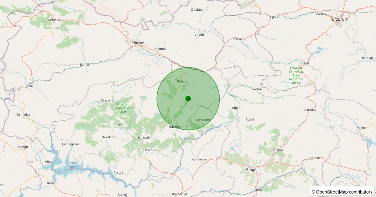 Son 7 gün içinde Pülümür - Gökçekonak Köyü noktasından 100 km yarıçap içerisinde meydana gelen diğer depremler:
