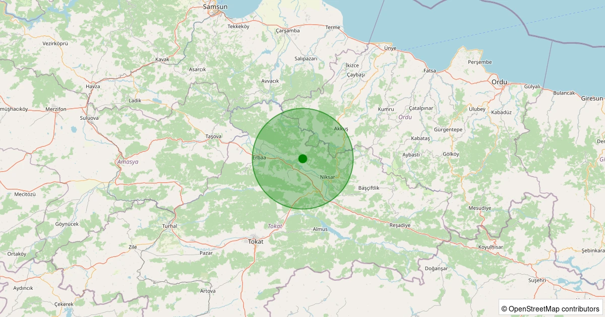 Son 7 gün içinde Erbaa - Pınarbeyli Köyü noktasından 100 km yarıçap içerisinde meydana gelen diğer depremler: