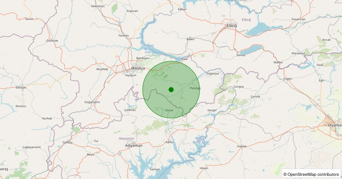 Son 7 gün içinde Pütürge - Tekederesi Köyü noktasından 100 km yarıçap içerisinde meydana gelen diğer depremler: