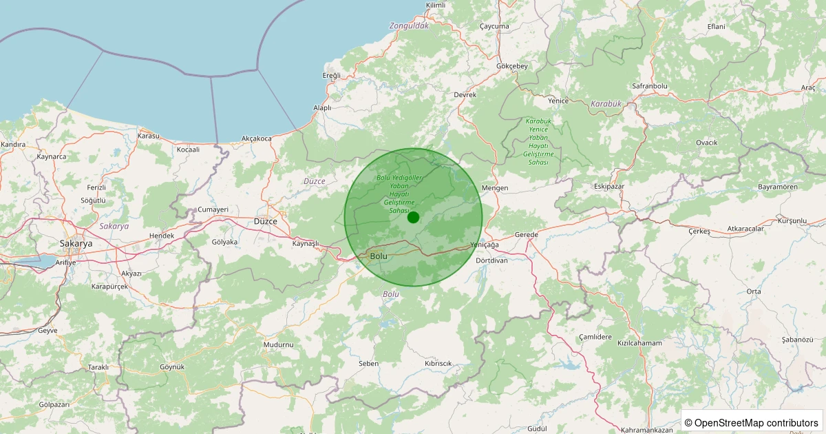 Son bir hafta içerisinde Bolu şehri Merkez noktasından 100 km yarıçap içerisinde toplamda 43 deprem kaydedilmiştir. Bu depremlerden en büyüğü 2.3 büyüklüğünde ve en sığ odaklısı 0.00 kilometre derinlikte gerçekleşmiştir.