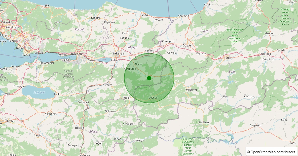 Son 7 gün içinde Akyazı - Mansurlar noktasından 100 km yarıçap içerisinde meydana gelen diğer depremler: