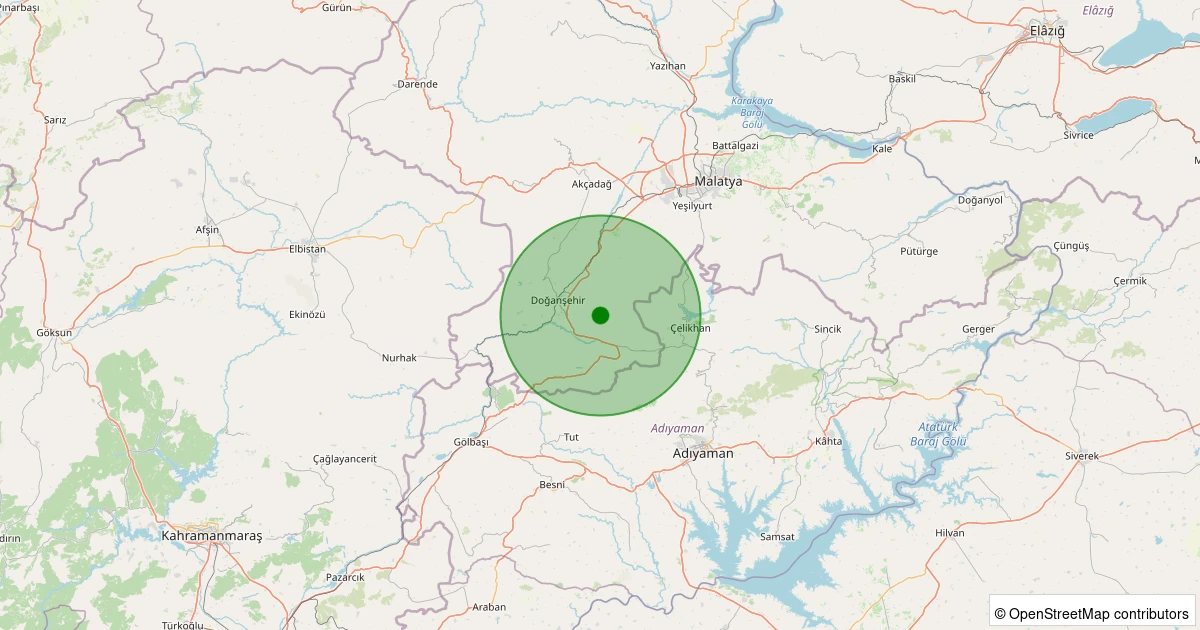 Son 7 gün içinde Doğanşehir - Sürgü noktasından 100 km yarıçap içerisinde meydana gelen diğer depremler: