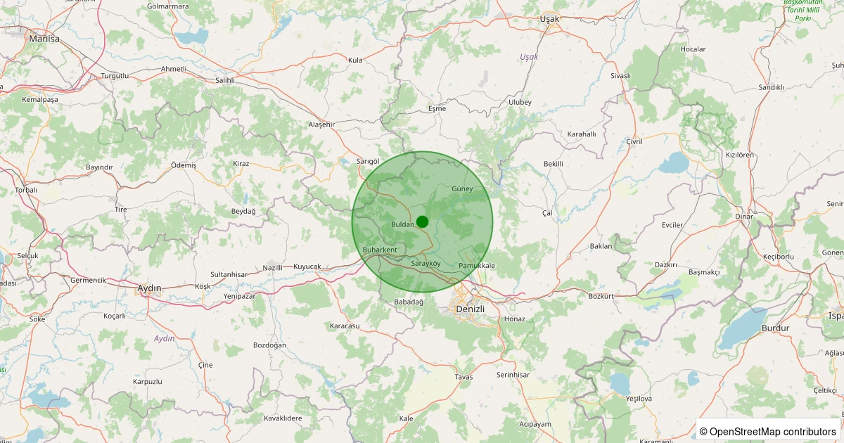 Son 7 gün içinde Buldan - Oğuz noktasından 100 km yarıçap içerisinde meydana gelen diğer depremler: