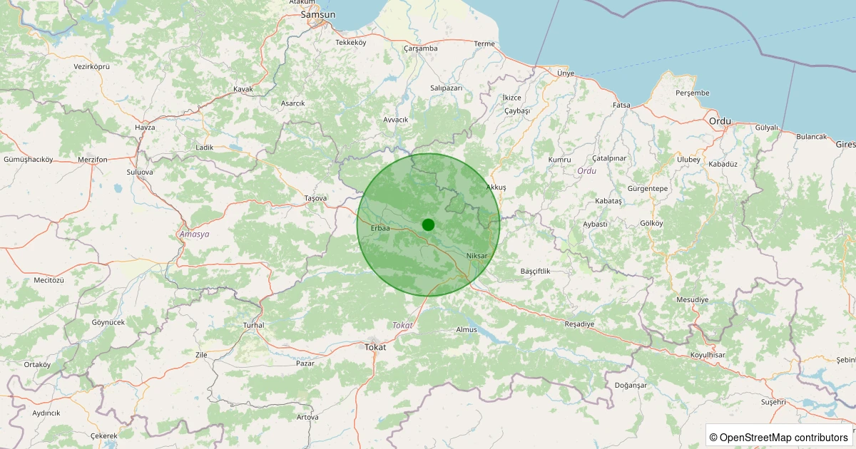 Son 7 gün içinde Erbaa - Çamdibi Köyü noktasından 100 km yarıçap içerisinde meydana gelen diğer depremler: