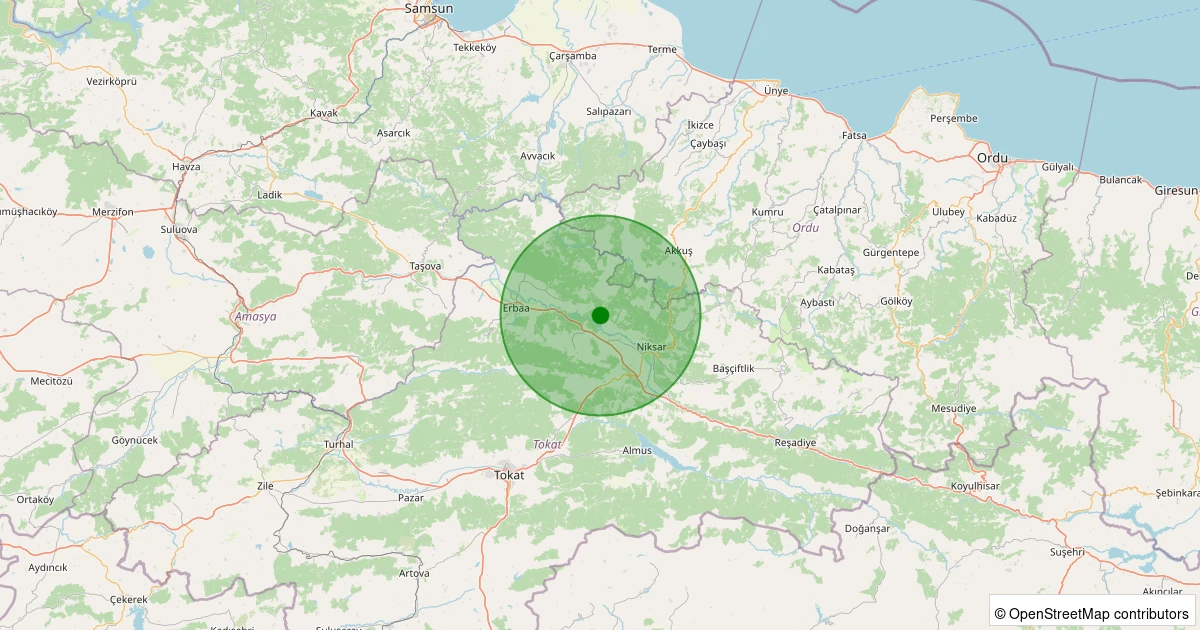 Son 7 gün içinde Niksar - Kümbetli Köyü noktasından 100 km yarıçap içerisinde meydana gelen diğer depremler: