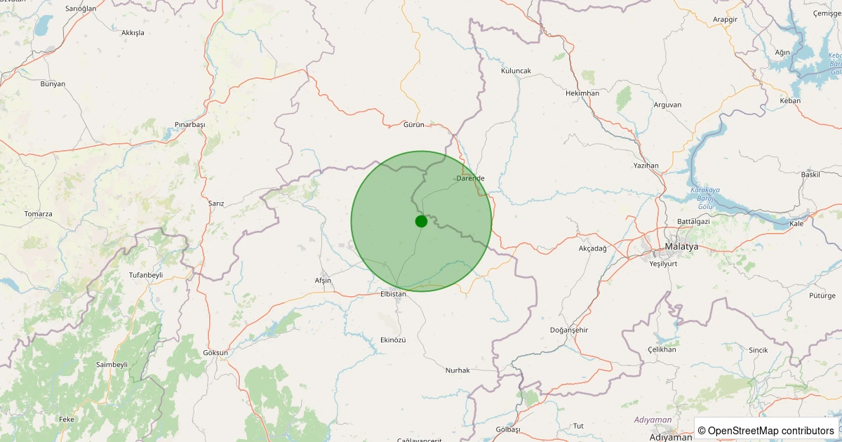 Son 7 gün içinde Elbistan - Gökcek Köyü noktasından 100 km yarıçap içerisinde meydana gelen diğer depremler: