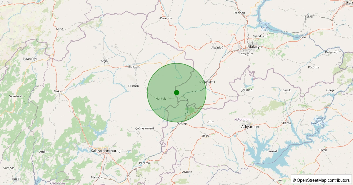 Son 7 gün içinde Doğanşehir - Bıçakçı noktasından 100 km yarıçap içerisinde meydana gelen diğer depremler: