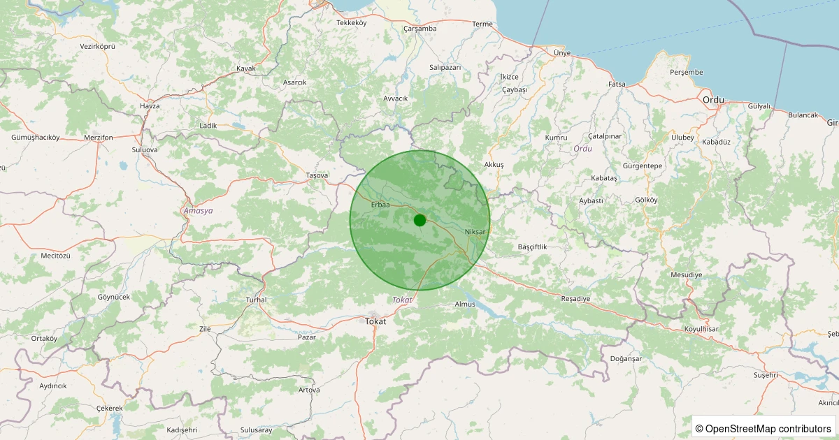 Son 7 gün içinde Niksar - Gözpınar noktasından 100 km yarıçap içerisinde meydana gelen diğer depremler: