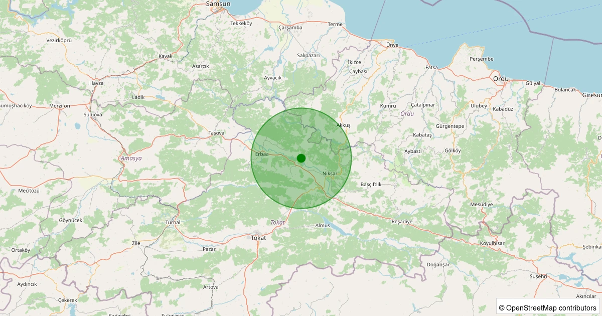 Son 7 gün içinde Erbaa - Pınarbeyli Köyü noktasından 100 km yarıçap içerisinde meydana gelen diğer depremler: