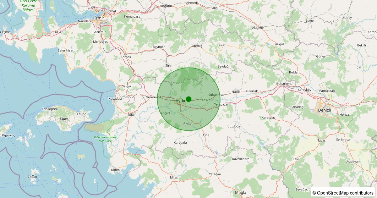 Son 7 gün içinde Efeler - İmamköy noktasından 100 km yarıçap içerisinde meydana gelen diğer depremler:
