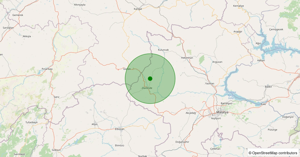 Son 7 gün içinde Darende - Hacılar Sıragoz noktasından 100 km yarıçap içerisinde meydana gelen diğer depremler: