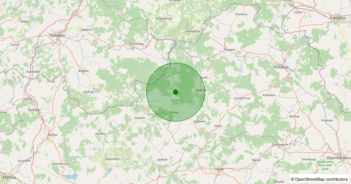 Son 7 gün içinde Simav - Yemişli Köyü noktasından 100 km yarıçap içerisinde meydana gelen diğer depremler: