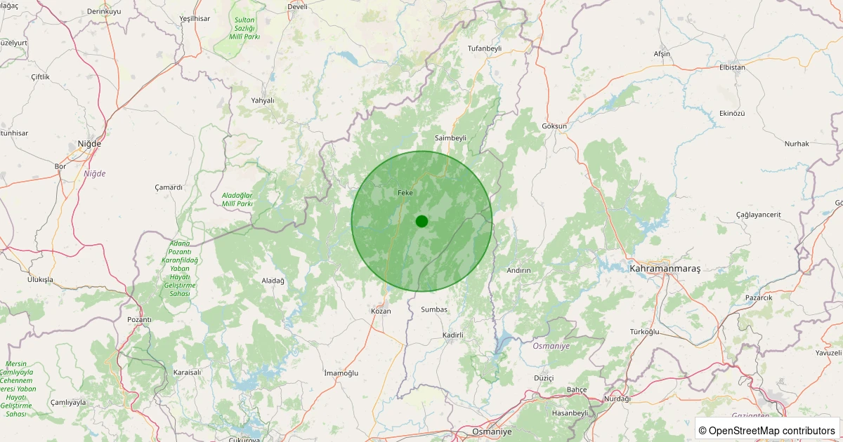 Son 7 gün içinde Feke - Kaşaltı noktasından 100 km yarıçap içerisinde meydana gelen diğer depremler: