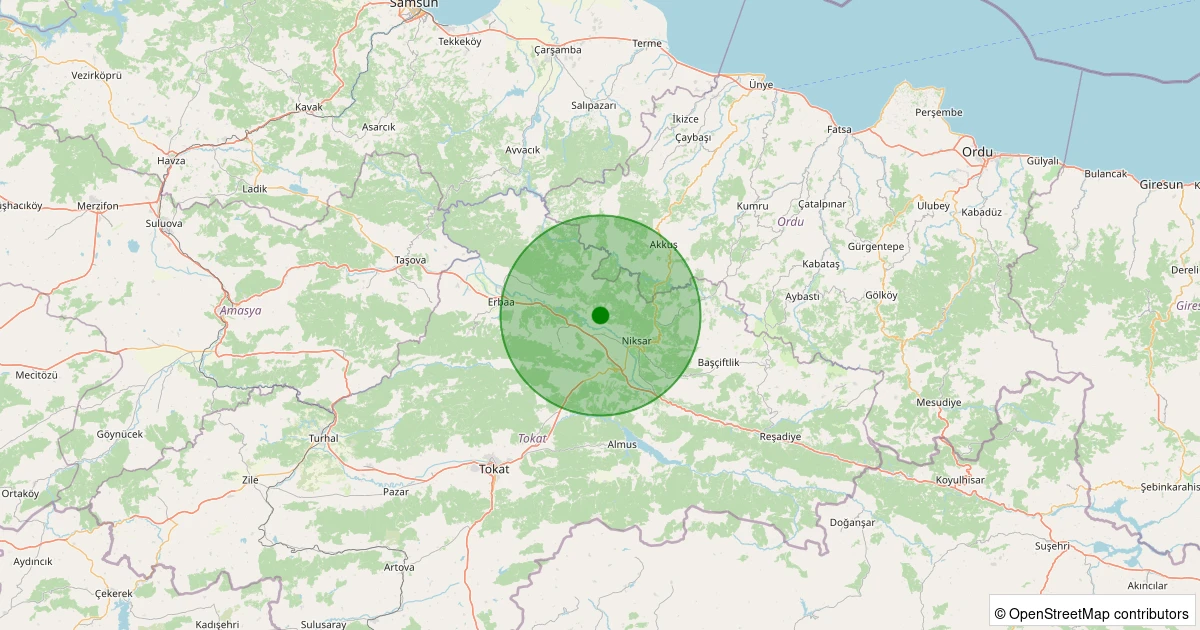 Son 7 gün içinde Niksar - Günebakan/Yenımahalle Köyü noktasından 100 km yarıçap içerisinde meydana gelen diğer depremler: