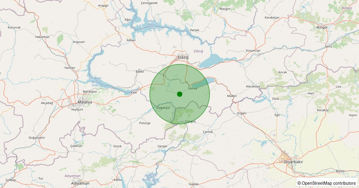 Son 7 gün içinde Sivrice - Kösebayır Köyü noktasından 100 km yarıçap içerisinde meydana gelen diğer depremler: