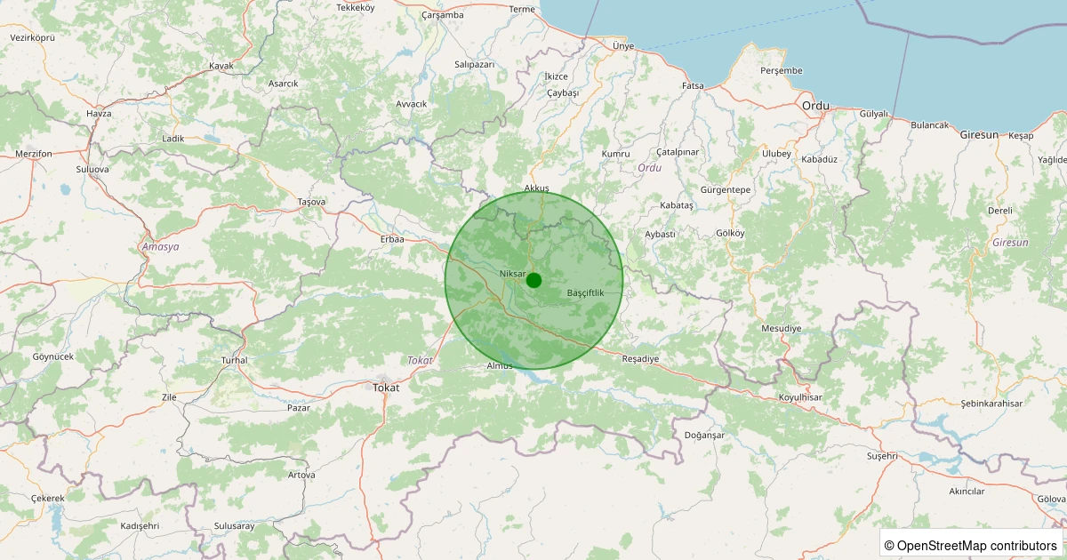 Son 7 gün içinde Niksar - Gülbayır Köyü noktasından 100 km yarıçap içerisinde meydana gelen diğer depremler: