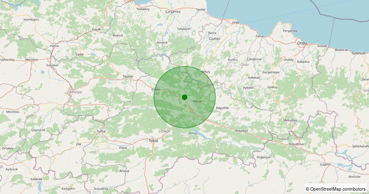 Son 7 gün içinde Niksar - Kümbetli Köyü noktasından 100 km yarıçap içerisinde meydana gelen diğer depremler: