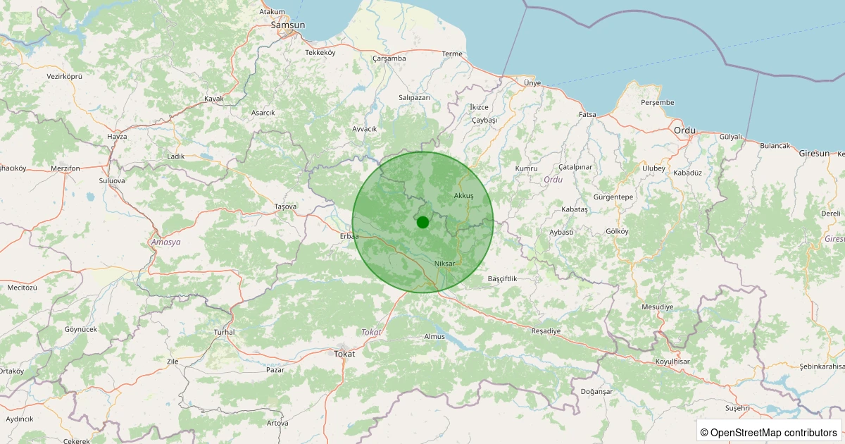 Son 7 gün içinde Niksar - Edilli Köyü noktasından 100 km yarıçap içerisinde meydana gelen diğer depremler: