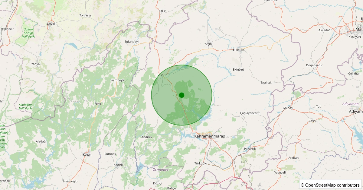Son 7 gün içinde Onikişubat - Şahinkayası Kurtuluş noktasından 100 km yarıçap içerisinde meydana gelen diğer depremler: