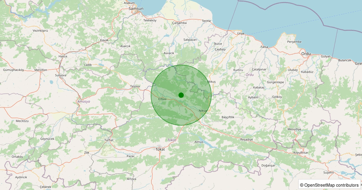 Son 7 gün içinde Erbaa - Yaylalı Köyü noktasından 100 km yarıçap içerisinde meydana gelen diğer depremler:
