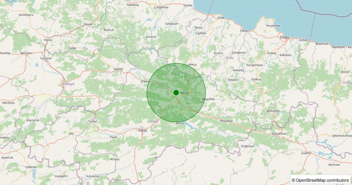 Son 7 gün içinde Niksar - Mahmudiye Köyü noktasından 100 km yarıçap içerisinde meydana gelen diğer depremler: