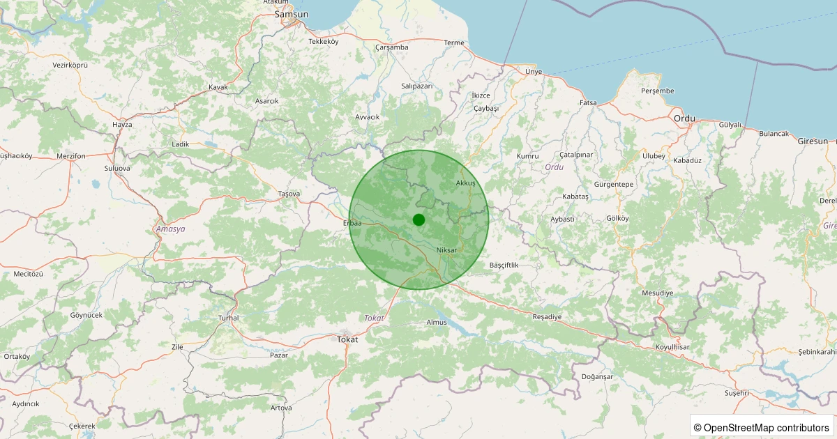 Son 7 gün içinde Niksar - Günebakan/Yenımahalle Köyü noktasından 100 km yarıçap içerisinde meydana gelen diğer depremler:
