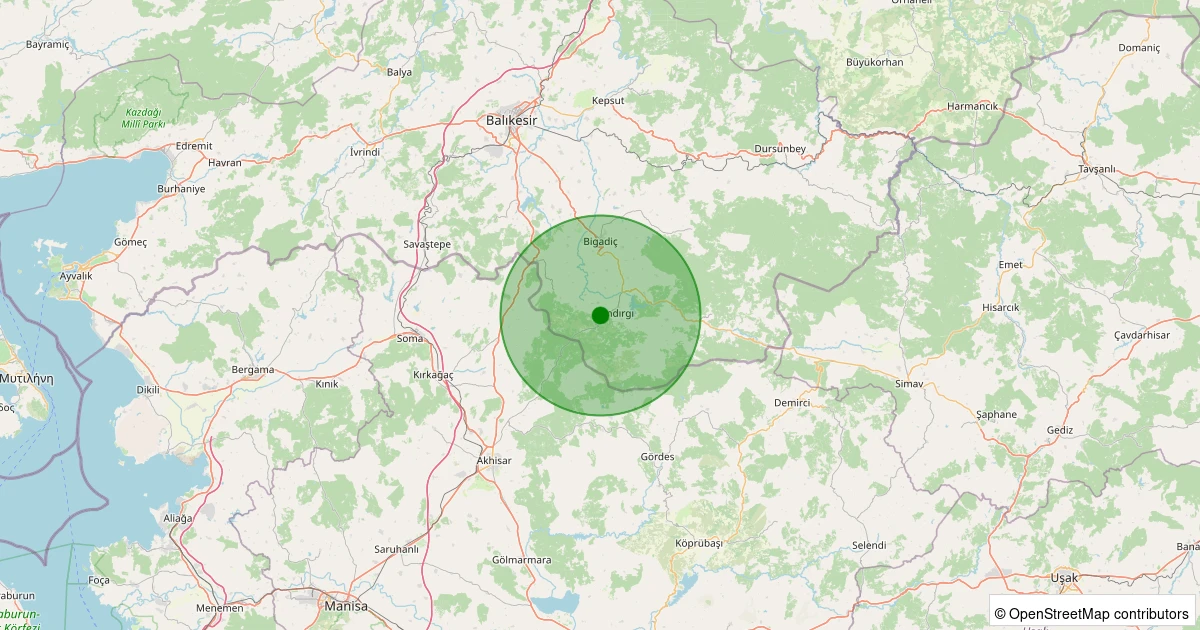 Son 7 gün içinde Sındırgı - Mandıra noktasından 100 km yarıçap içerisinde meydana gelen diğer depremler:
