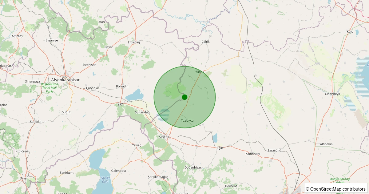 Son 7 gün içinde Sultandağı - Üçkuyu/Yeşilyurt Köyü noktasından 100 km yarıçap içerisinde meydana gelen diğer depremler: