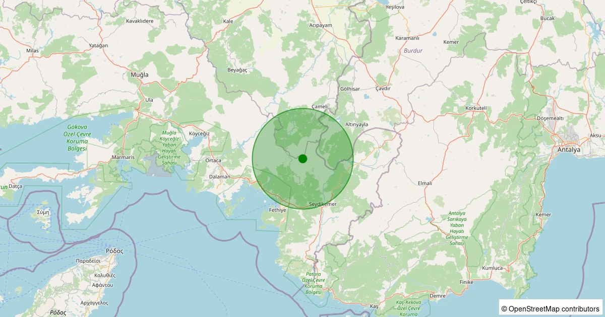 Son 7 gün içinde Fethiye - Söğütlü noktasından 100 km yarıçap içerisinde meydana gelen diğer depremler: