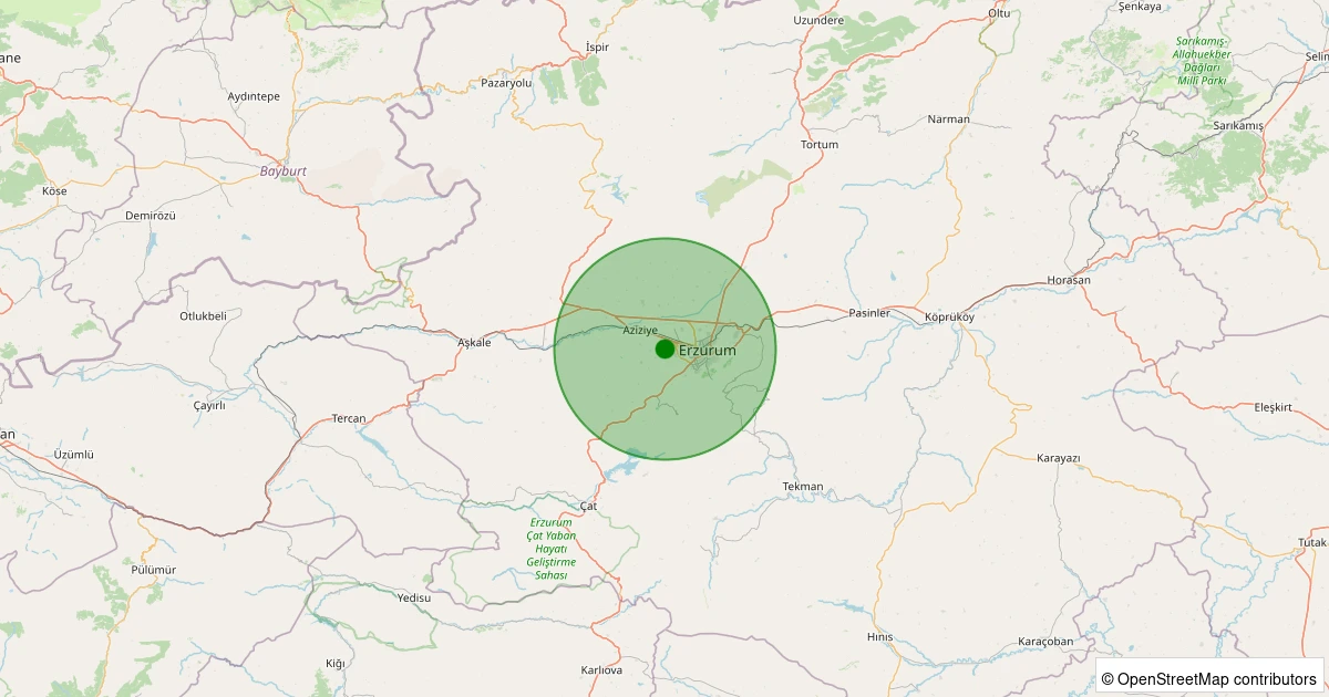 Son 7 gün içinde Aziziye - Ömertepe noktasından 100 km yarıçap içerisinde meydana gelen diğer depremler: