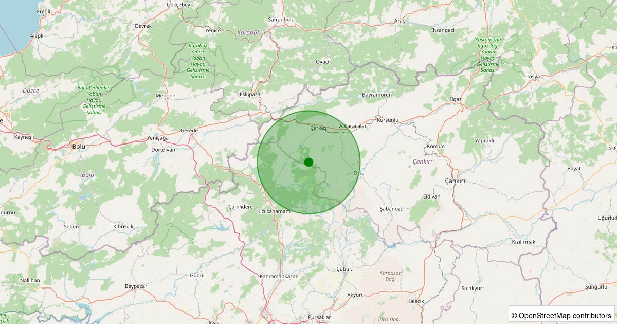 Son 7 gün içinde Çerkeş - Kısaç Köyü noktasından 100 km yarıçap içerisinde meydana gelen diğer depremler: