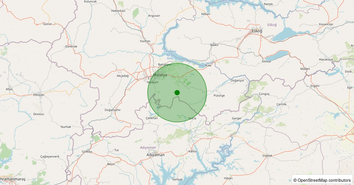 Son 7 gün içinde Battalgazi - Uluköy Köyü noktasından 100 km yarıçap içerisinde meydana gelen diğer depremler: