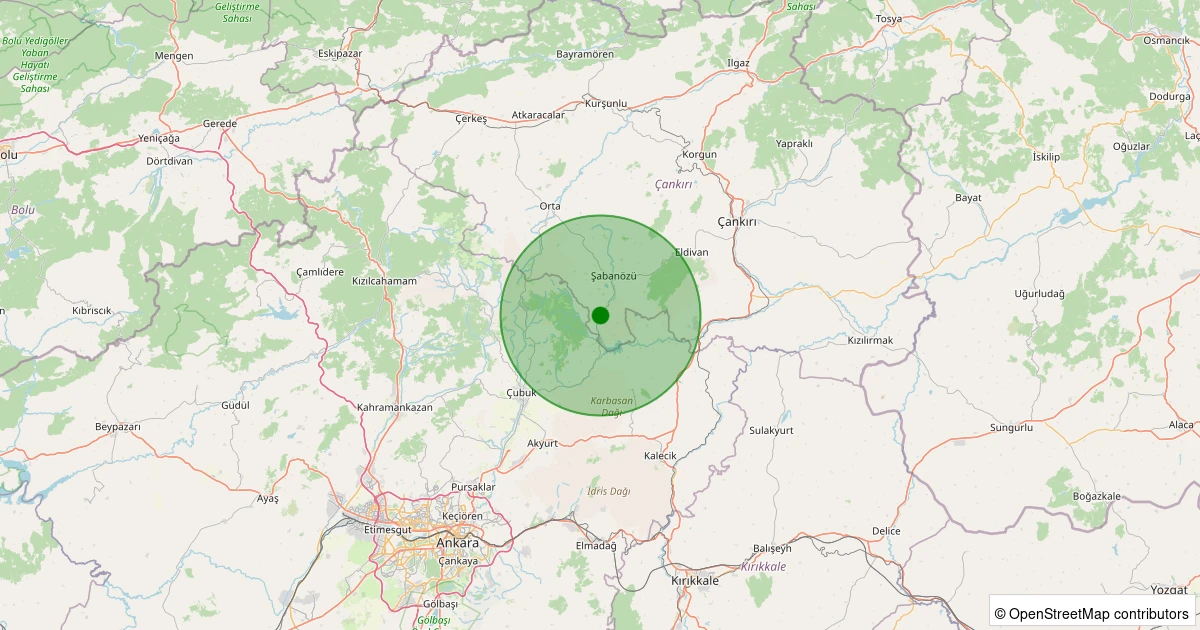 Son 7 gün içinde Şabanözü - Kutluşar Köyü noktasından 100 km yarıçap içerisinde meydana gelen diğer depremler: