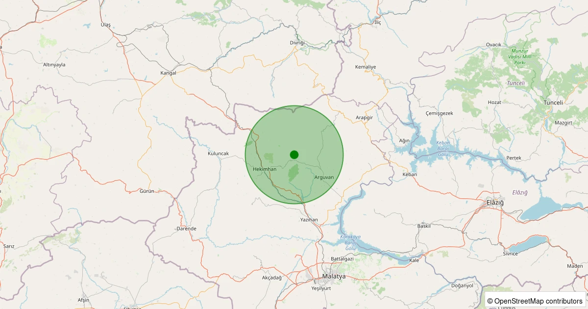 Son 7 gün içinde Hekimhan - İğdir Köyü noktasından 100 km yarıçap içerisinde meydana gelen diğer depremler: