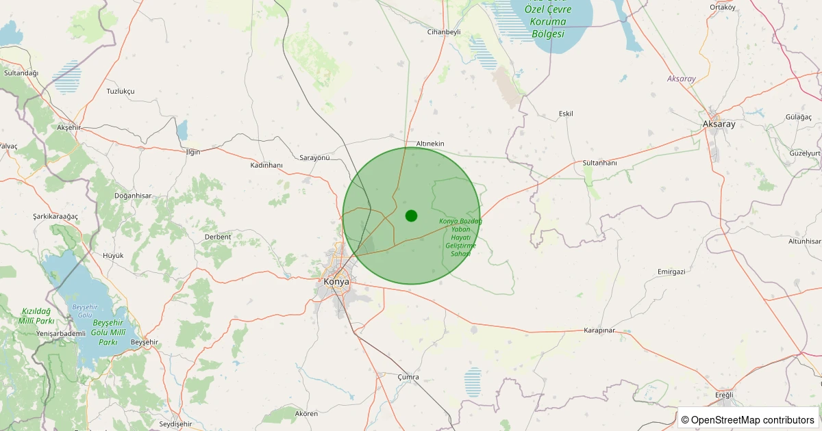 Son 7 gün içinde Selçuklu - Eğribayat Köyü noktasından 100 km yarıçap içerisinde meydana gelen diğer depremler: