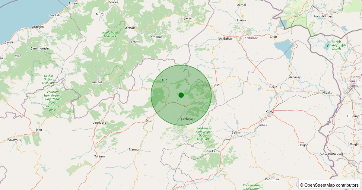 Son 7 gün içinde Şenkaya - Yanıkkaval noktasından 100 km yarıçap içerisinde meydana gelen diğer depremler: