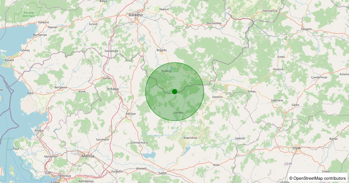 Son 7 gün içinde Gördes noktasından 100 km yarıçap içerisinde meydana gelen diğer depremler: