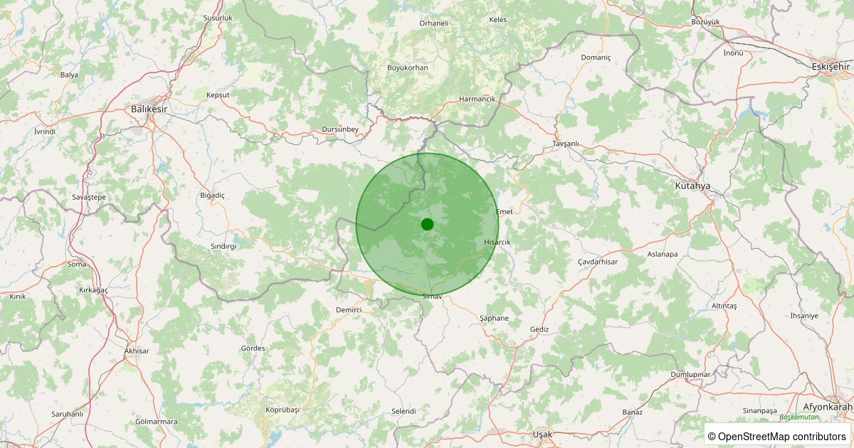 Son 7 gün içinde Simav - Yavı Köyü noktasından 100 km yarıçap içerisinde meydana gelen diğer depremler: