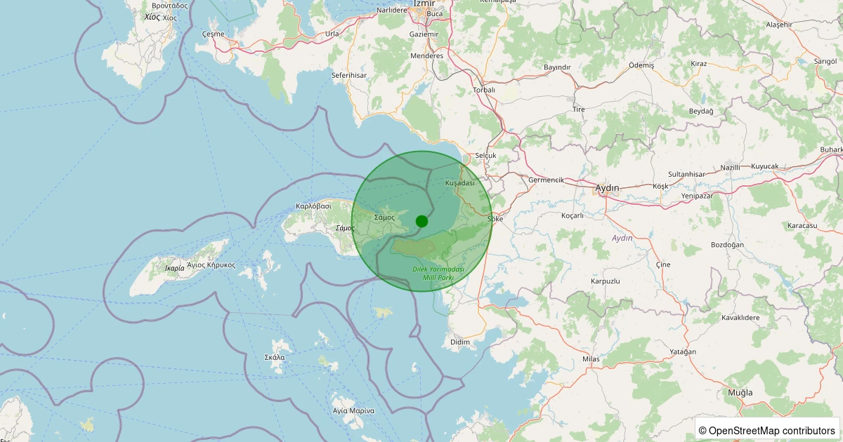 Son 7 gün içinde KUSADASI noktasından 100 km yarıçap içerisinde meydana gelen diğer depremler: