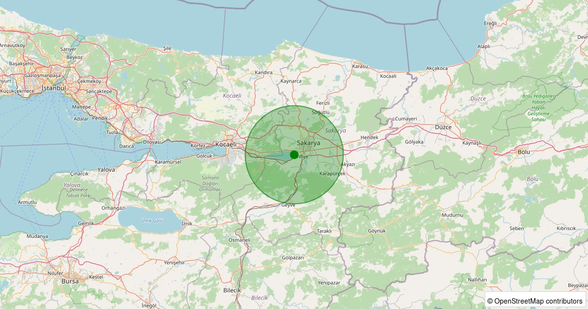Son 7 gün içinde Serdivan noktasından 100 km yarıçap içerisinde meydana gelen diğer depremler: