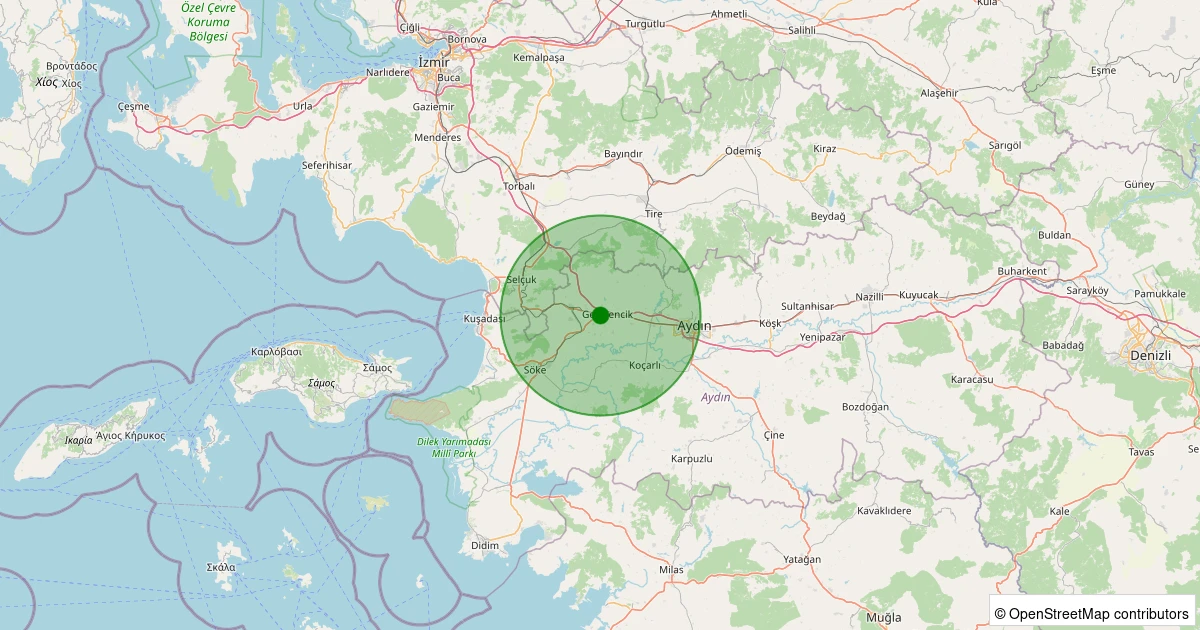 Son 7 gün içinde Germencik - Hıdırbeyli noktasından 100 km yarıçap içerisinde meydana gelen diğer depremler: