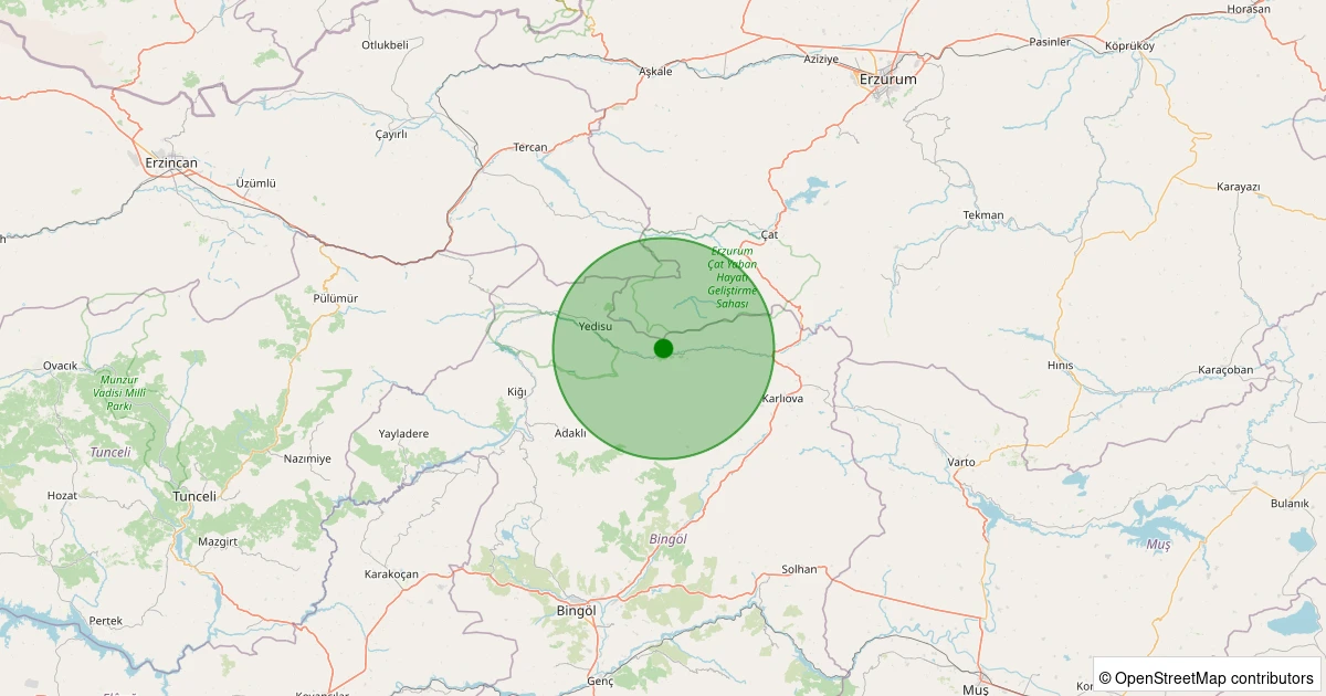 Son 7 gün içinde Karlıova - Kaynarpınar Köyü noktasından 100 km yarıçap içerisinde meydana gelen diğer depremler: