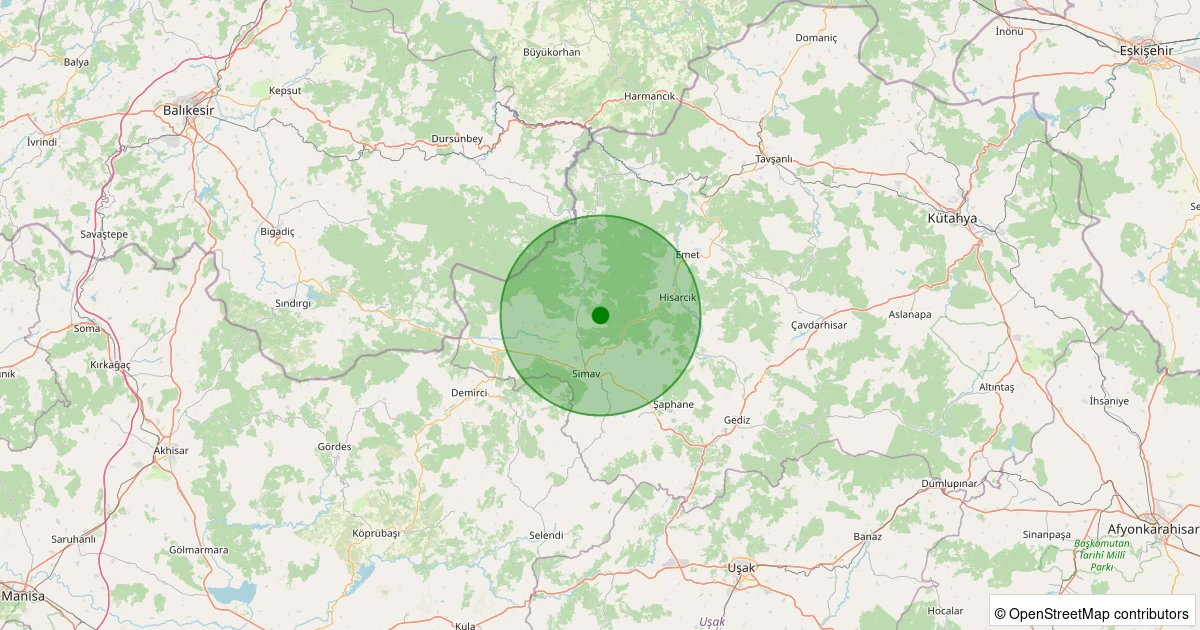 Son 7 gün içinde Simav - Yemişli Köyü noktasından 100 km yarıçap içerisinde meydana gelen diğer depremler: