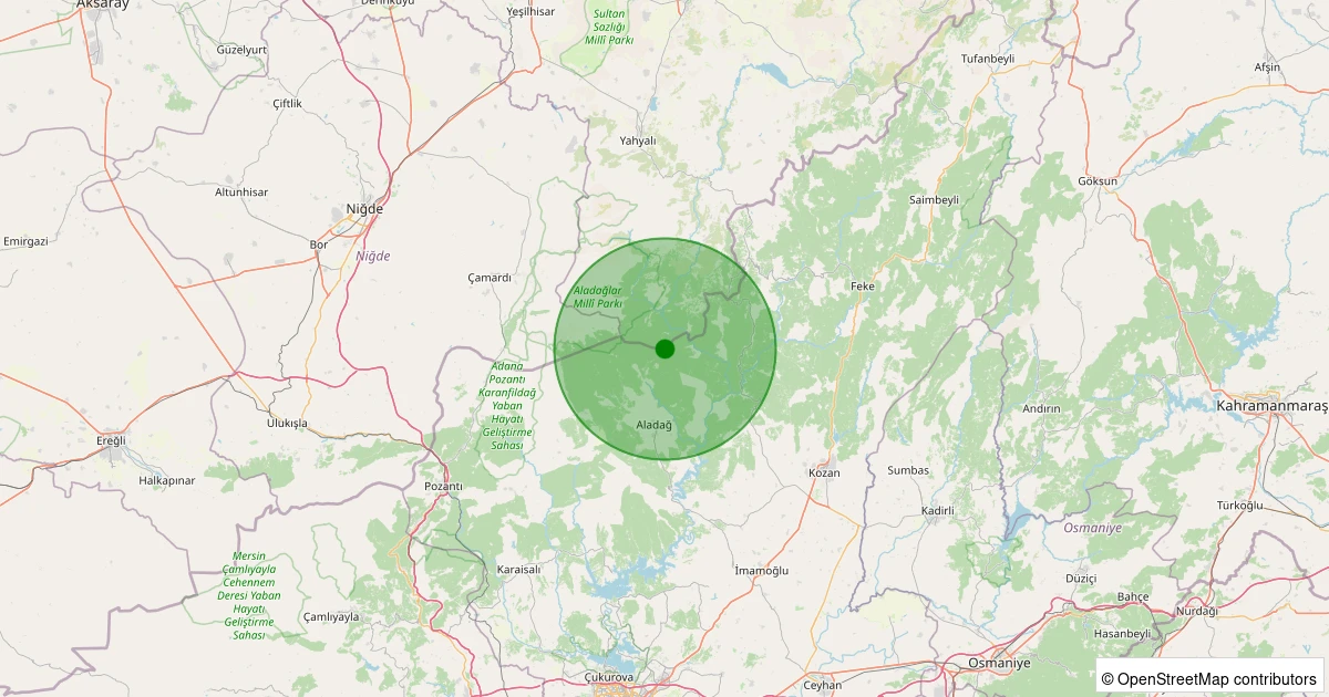 Son 7 gün içinde Aladağ - Küp noktasından 100 km yarıçap içerisinde meydana gelen diğer depremler: