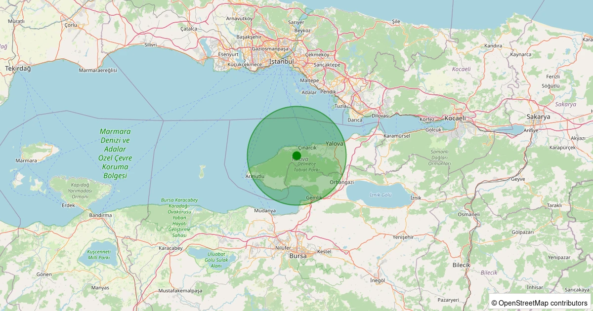 Son 7 gün içinde Çınarcık - Teşvikiye noktasından 100 km yarıçap içerisinde meydana gelen diğer depremler: