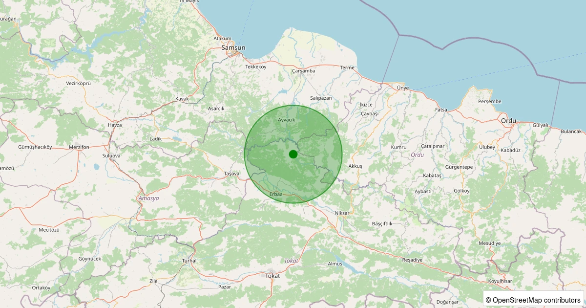 Son 7 gün içinde Erbaa - Gökal/G.O.Paşa noktasından 100 km yarıçap içerisinde meydana gelen diğer depremler: