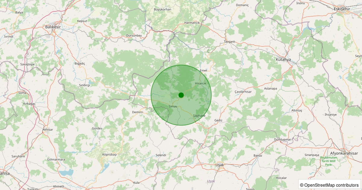 Son 7 gün içinde Simav - Karacaören Köyü noktasından 100 km yarıçap içerisinde meydana gelen diğer depremler: